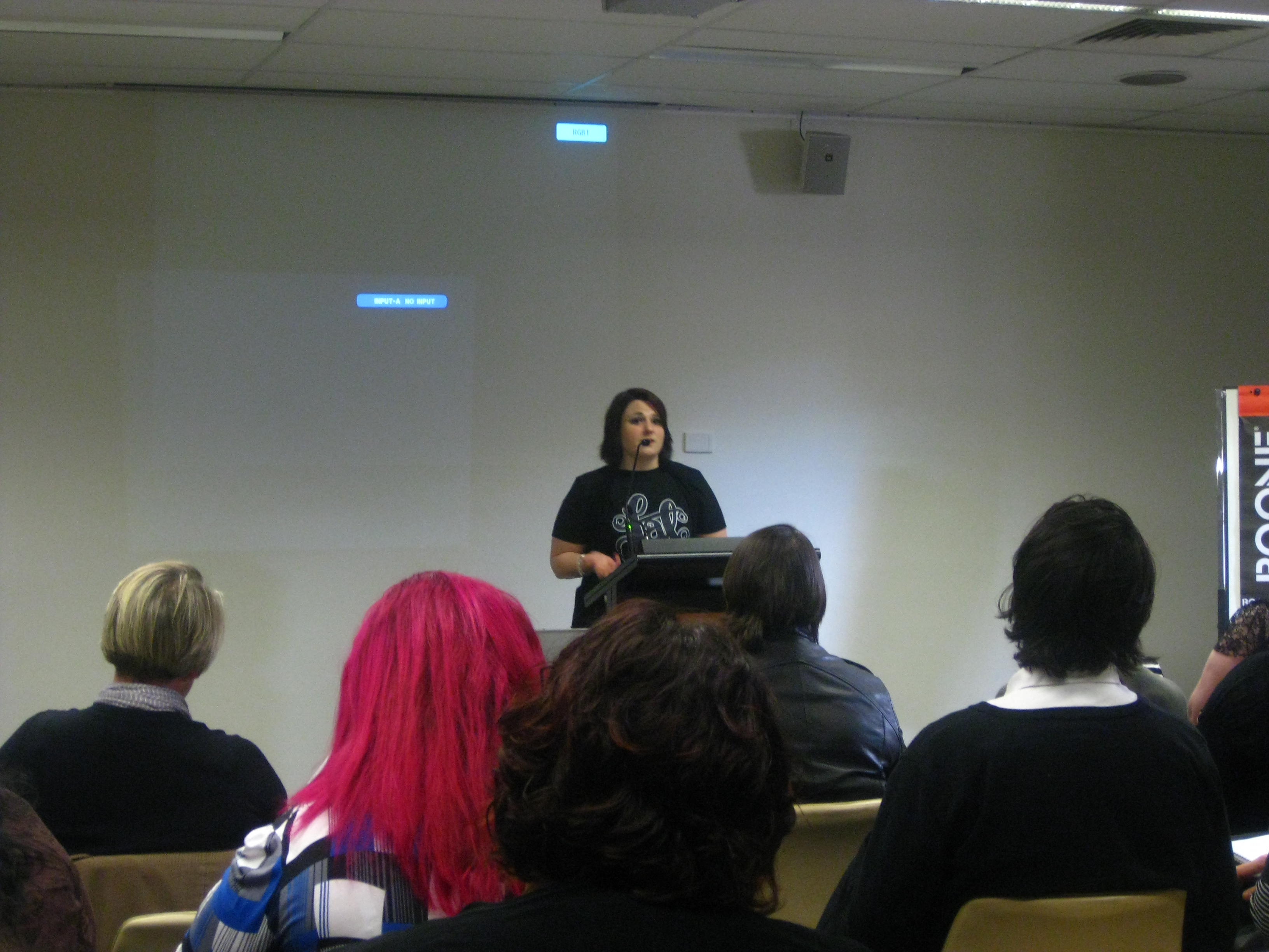 This talk was fascinating for me, having witnessed a fair amount of fat chick fetishisation in my time. Dani’s research explores the “sexy punks” of Suicide Girls, a site that proudly proclaims itself as the home of alternative porn when in fact its aesthetics are just as narrow as those within mainstream culture, give or take a few piercings and tattoos. I really enjoyed Dani’s reflections on her research and the questioning of why one sort of “alternative” beauty is seen as acceptable and the other a fetishised object.